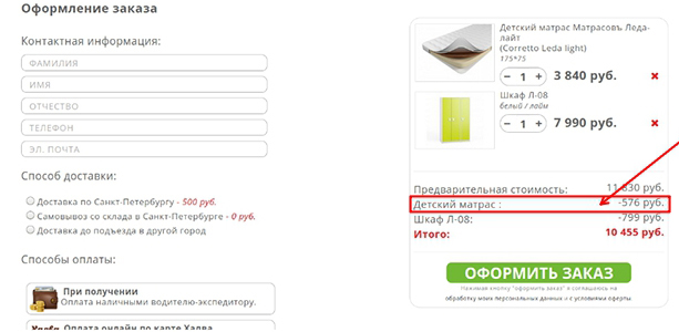 Скидка автоматически рассчитывается в "Корзине", при оформлении Вашего заказа