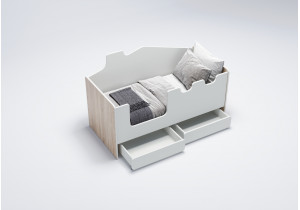 Чаще всего для трехлетнего ребенка подходит небольшая односпальная одноярусная кровать, узкая, занимающая мало места. К тому же у нас есть модели с хранением вещей: кровати с ящиками, со встроенным шкафом, со столом, стеллажом или игровой зоной, что позволяет значительно сэкономить пространство.