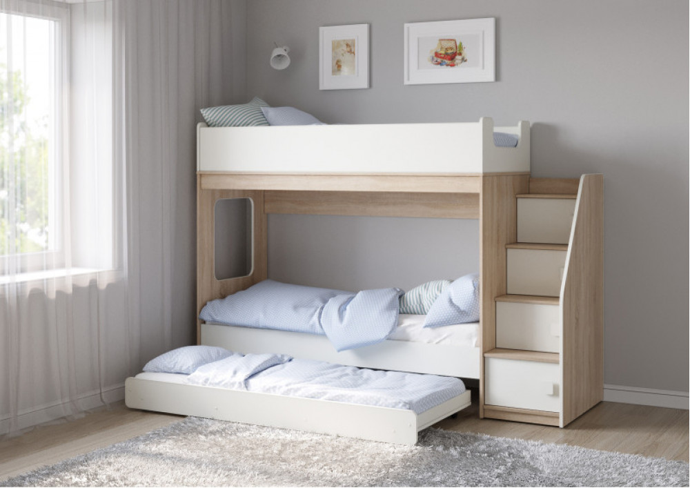 Двухъярусная кровать Легенда D602.3 с ящиком - уникальный комплект для троих детей!