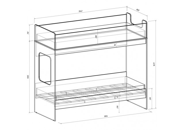 Классическая детская двухъярусная кровать с двумя параллельными спальными местами размером 1900х750 или 1750х750.
